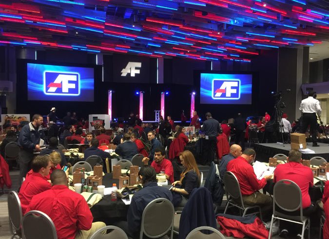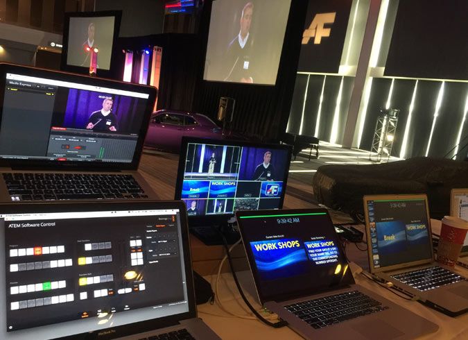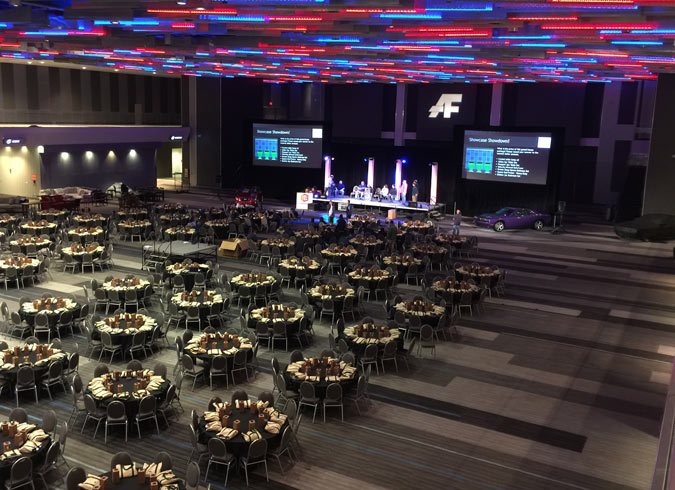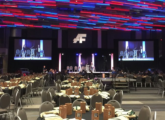 The annual American Freight conference is a single-day conference aimed empowering and educating the sales teams in the company. High energy and professionalism was important to the client so that it carried between the event staging, website design, video production, and graphic design. This all-in-one event solution included a video recording package, professional and cost effective staging, graphics for live video throughout the event, video creation for the awards celebration, on-site support for one main ballroom and 5 breakout sessions, and capturing the event via a live-mixed video stream and photography.