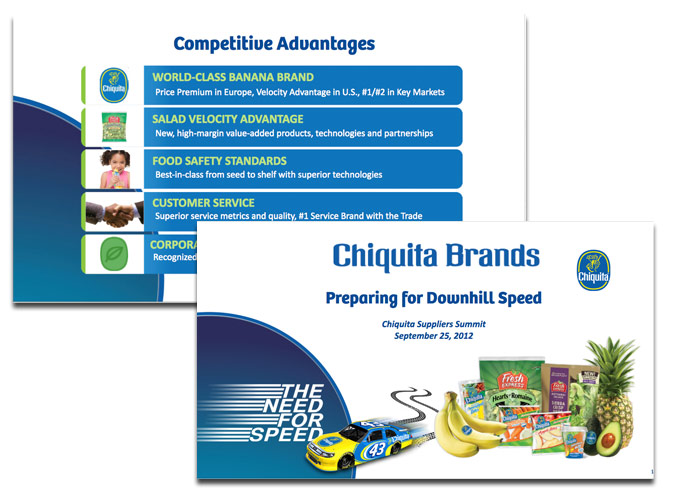 The Chiquita Supplier Summit was a multi-day conference aimed at thanking and celebrating partner organizations. A consistent theme was very important to the client so that it carried between the event staging, website design, video production, and presentation support. This all-in-one event solution included a website for conference registration, a themed presentation template, staging that supported the event theme, an introduction video for the conference, award videos for the partner companies, and capturing the event via a live-mixed video stream and photography.
