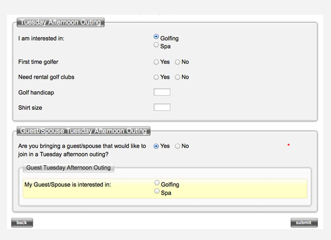 To support the conference, we built a website to house the schedule, bios of the presenters, and a conference registration form. Using this form, conference attenders were able to note when they were arriving and leaving, if they were bringing a guest, and select an activity with options. The form submission were both sent via email and accessible on a custom viewer on the website where submissions could be viewed, modified, and exported.